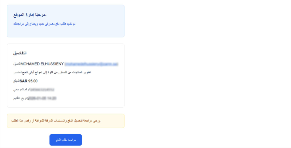 عند إنشاء أي طلب تحويل بنكي جديد، سيتم إرسال رسالة بريد إلكتروني تلقائيًا إلى البريد الإلكتروني المسجّل لإشعارك بوصول الطلب ومراجعته.