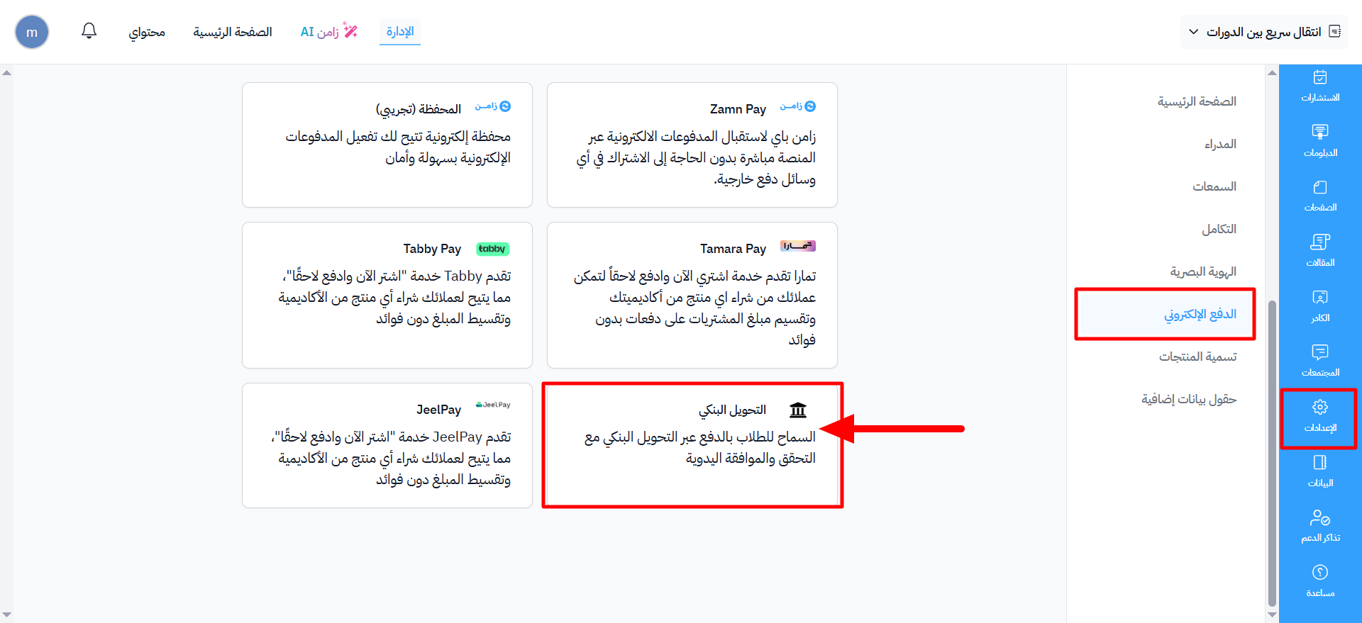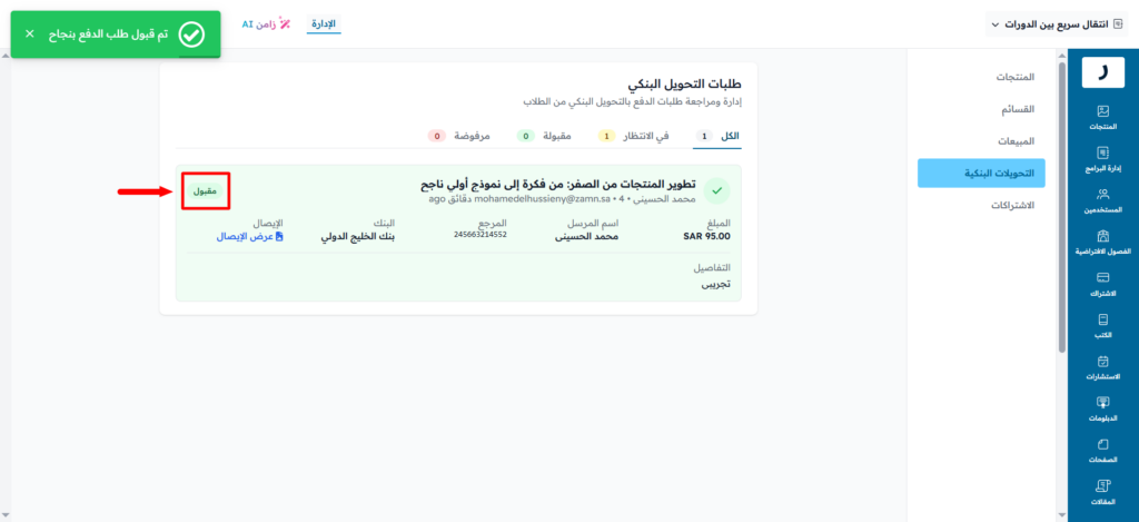 - تعليمات التحويل: تعليمات ستظهر للطلاب أثناء إتمام عملية الدفع (اختياري).