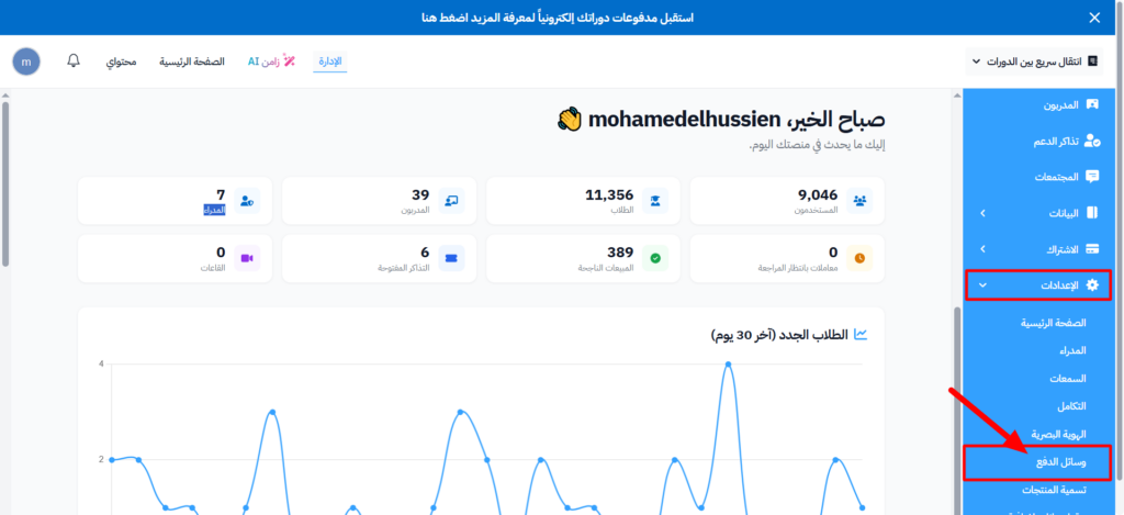 1 .قم بتسجيل الدخول إلى لوحة تحكم المنصة.