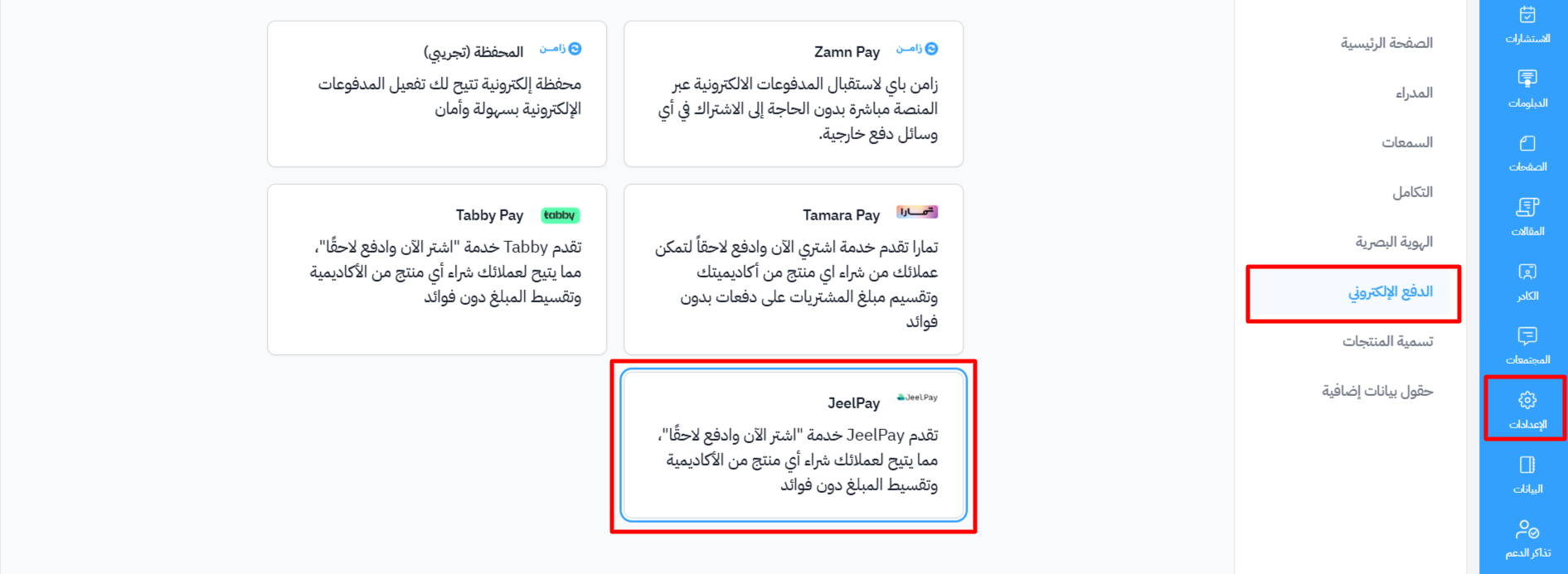 2 . انتقل إلى صفحة “الدفع الإلكتروني”.