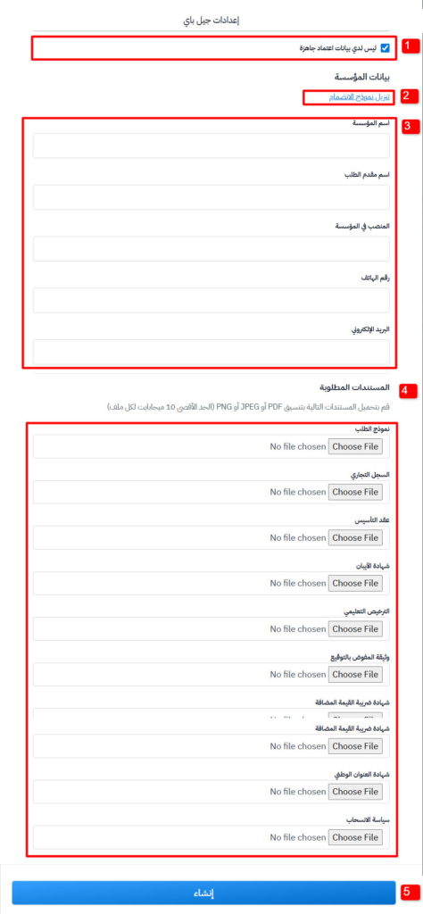 - بعد استكمال البيانات وارفاق المستندات، اضغط على زر إنشاء.