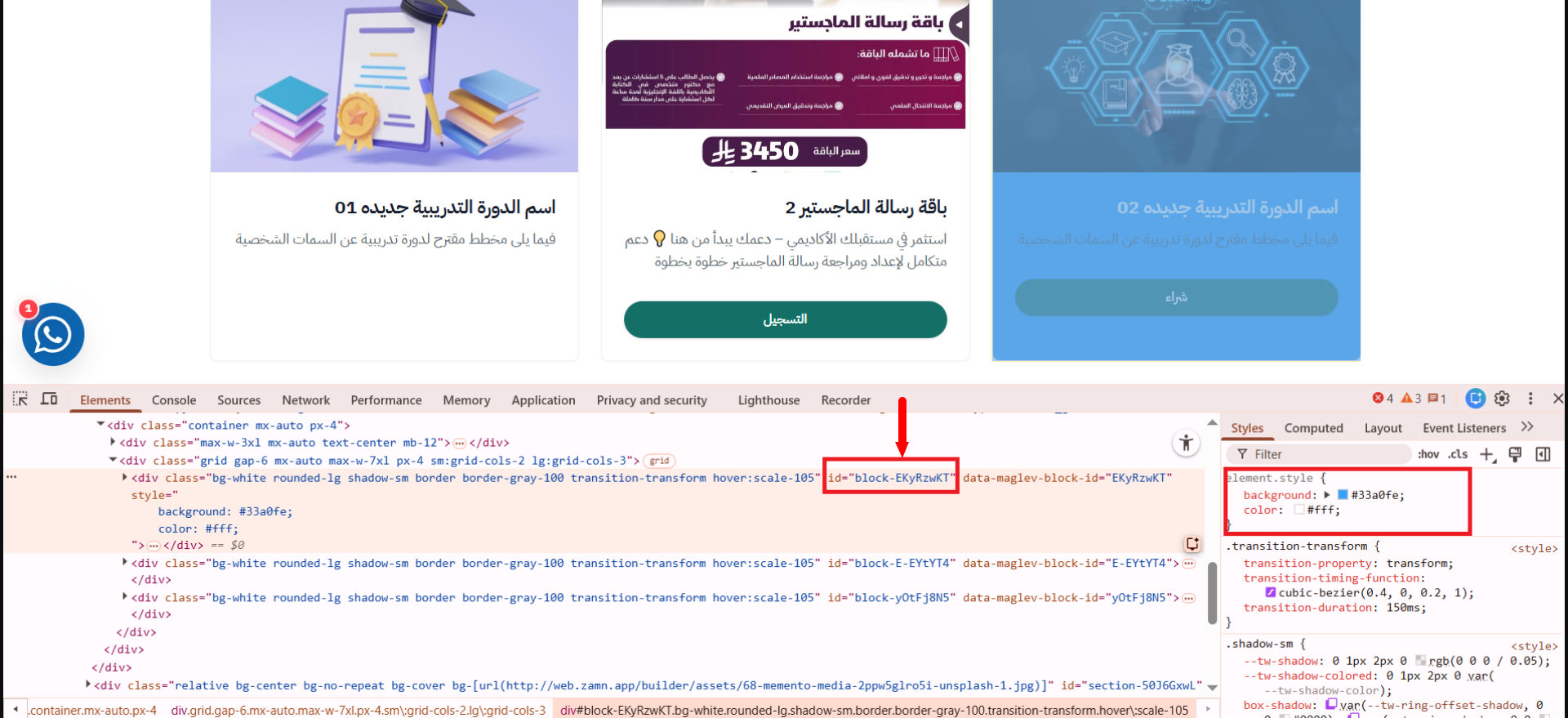يتم كتابة رقم العنصر في الكود ثم الضغط على حفظ ليتم تطبيق الكود.