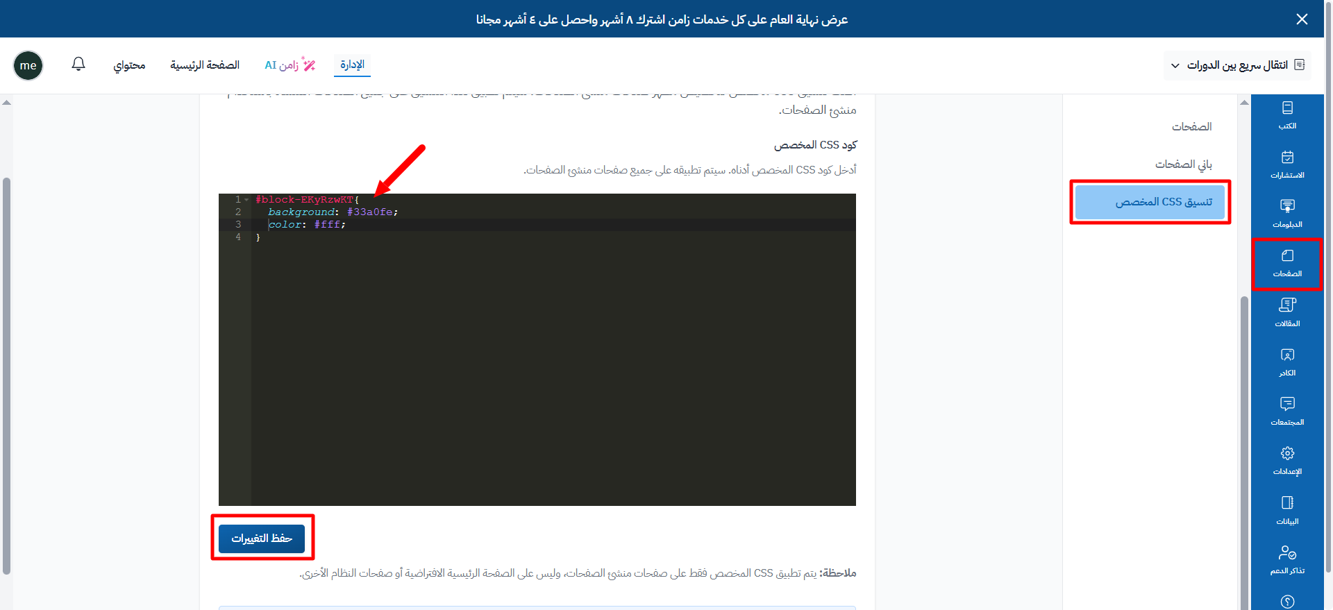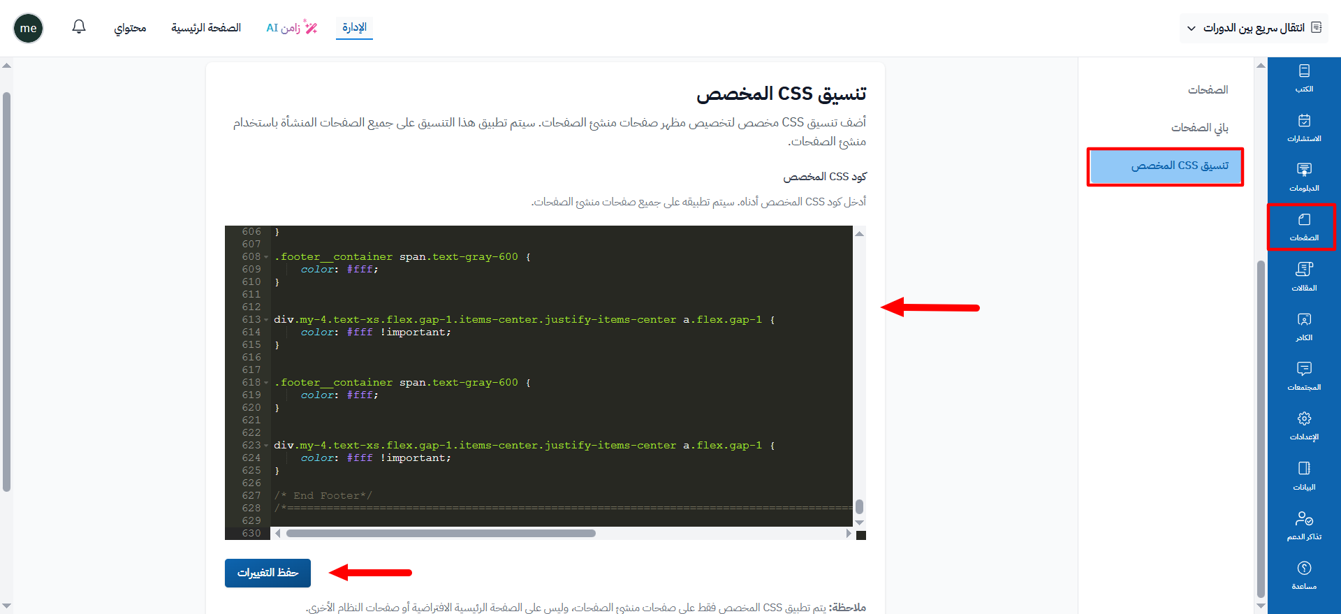 4 . اضغط على حفظ ليتم تطبيق الكود.