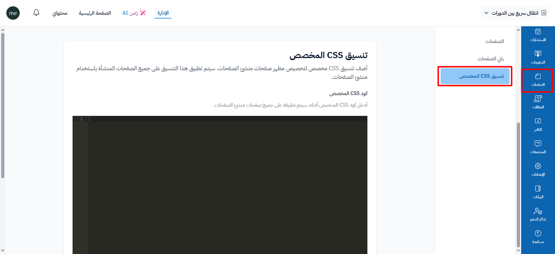2 . انتقل إلى صفحة “تنسيق CSS المخصص”.