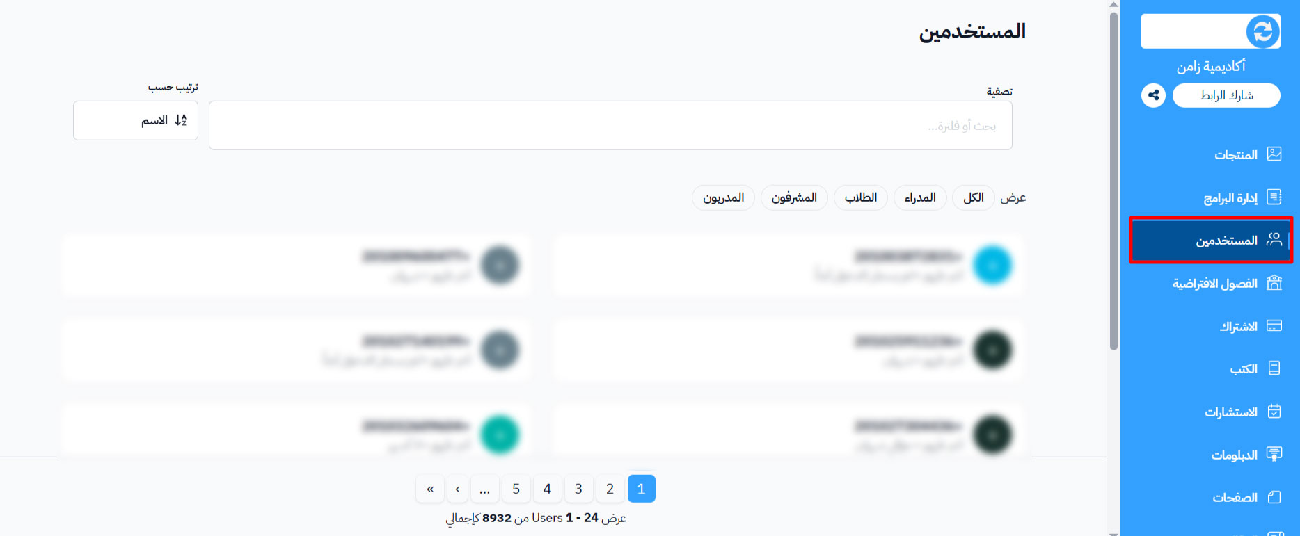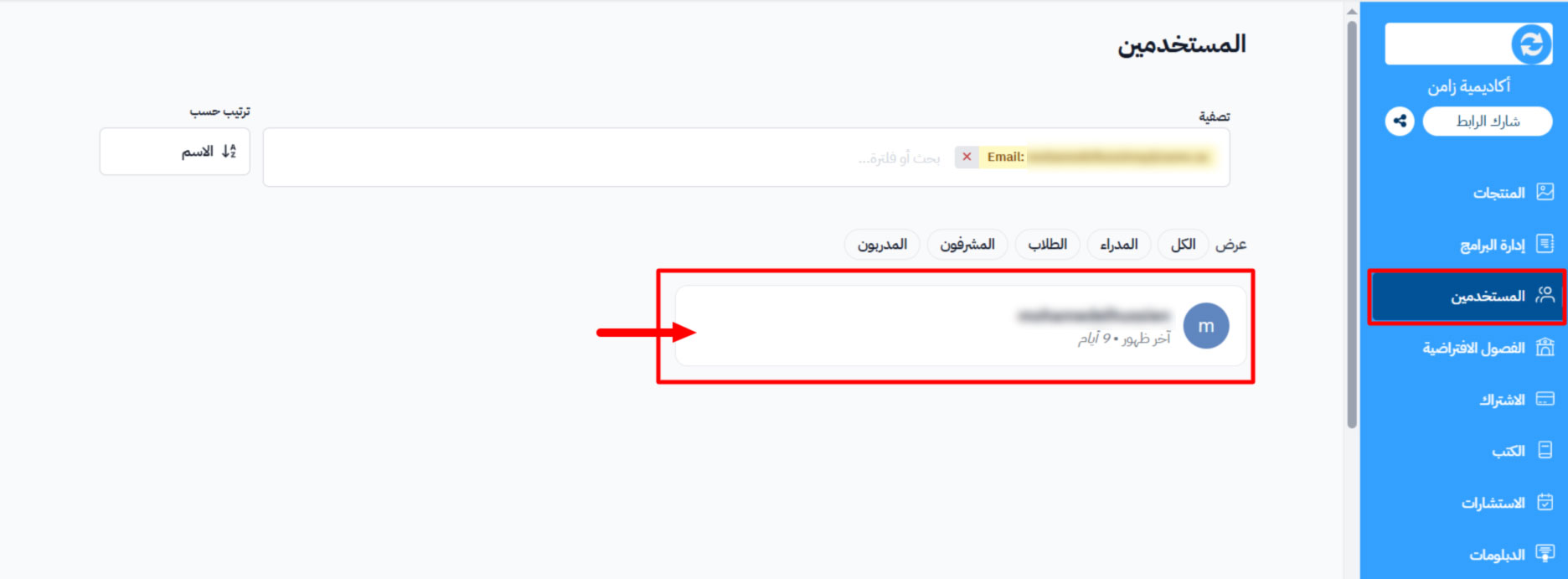 1. من لوحة التحكم، انتقل إلى قسم “المستخدمين”.