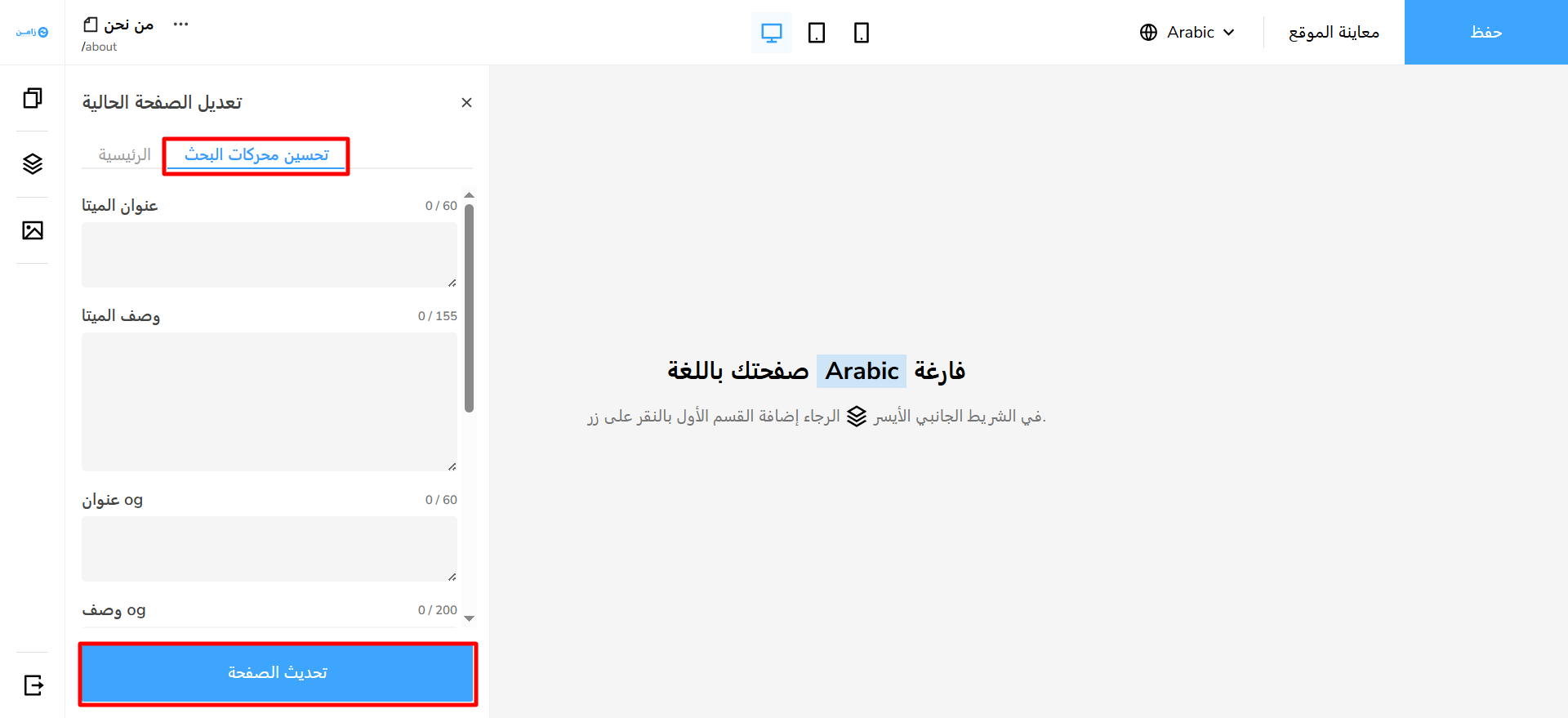 • يمكنك إعداد البيانات الخاصة بالأرشفة وتحسين ظهور صفحتك في نتائج البحث.