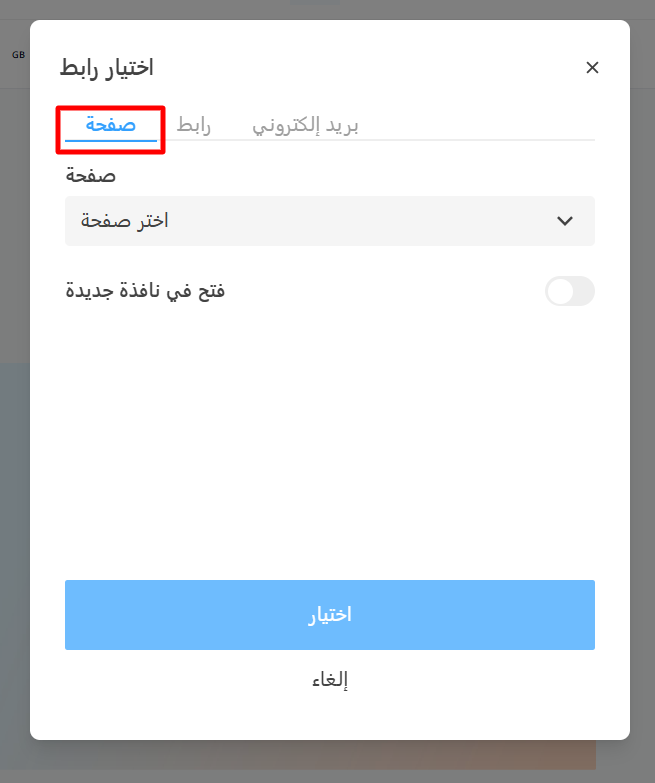 • اختر الصفحة المراد الانتقال إليها من القائمة المنسدلة (المبنية عبر “باني الصفحات”).