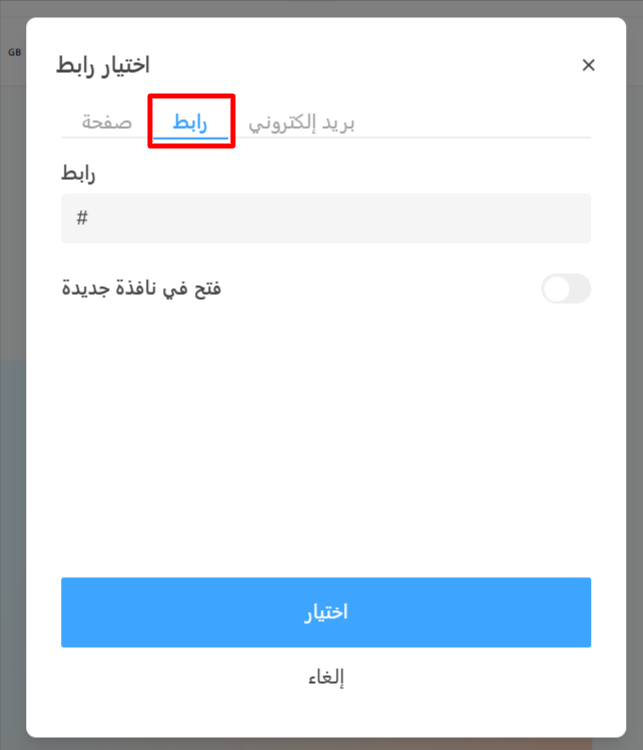 ملاحظة : عند اختيار خيار “رابط”، ستُعرض عليك ثلاثة خيارات لتحديد نوع الرابط الذي ترغب في استخدامه.