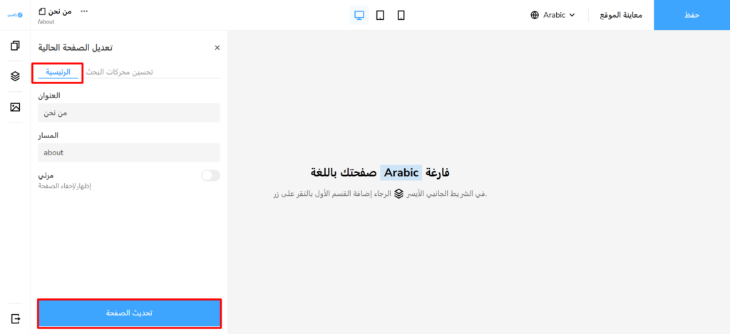 خطوات إنشاء صفحة باستخدام “باني الصفحات”