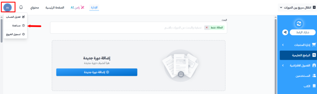 2.من القائمة المنسدلة، اختر قسم المساعدة.