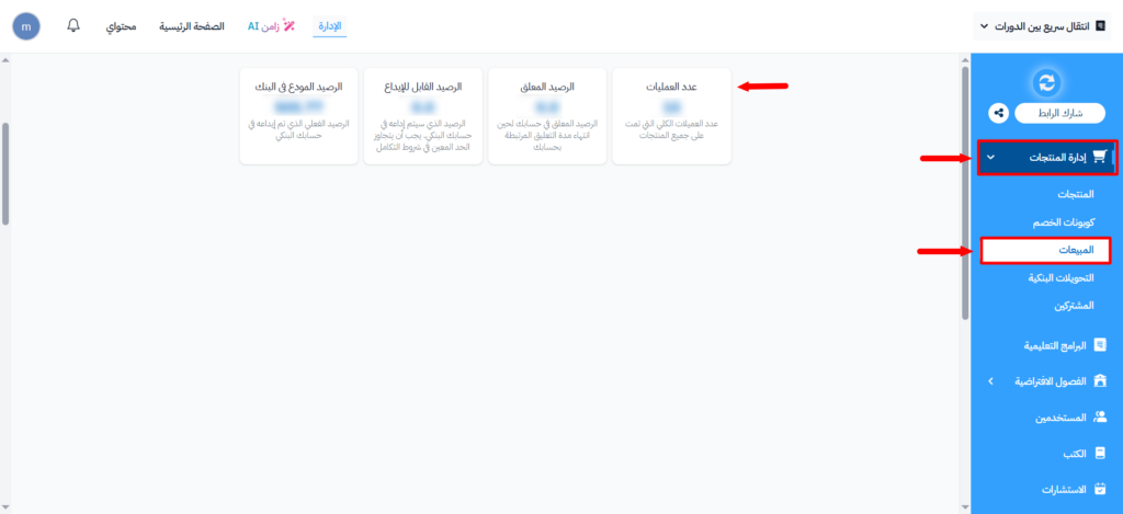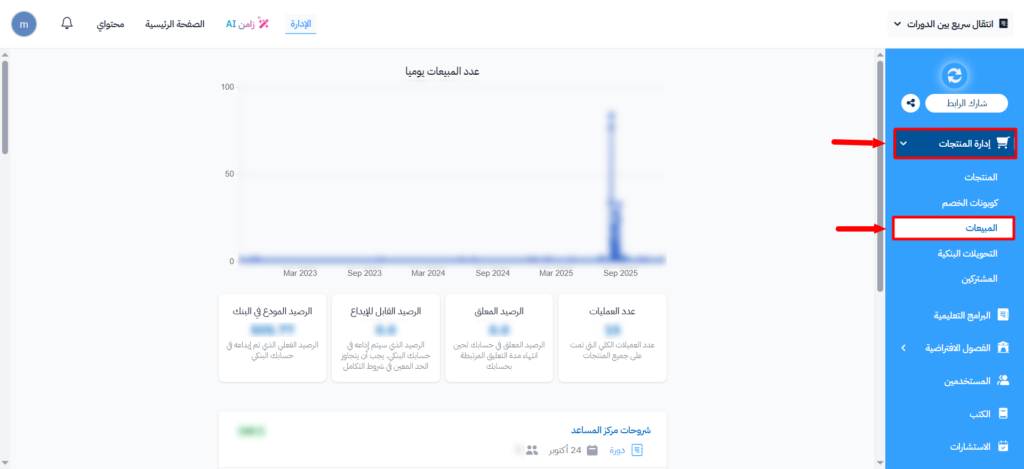 عند الدخول إلى صفحة المبيعات، ستجد مجموعة من الأقسام التي تساعدك على متابعة نشاطك.