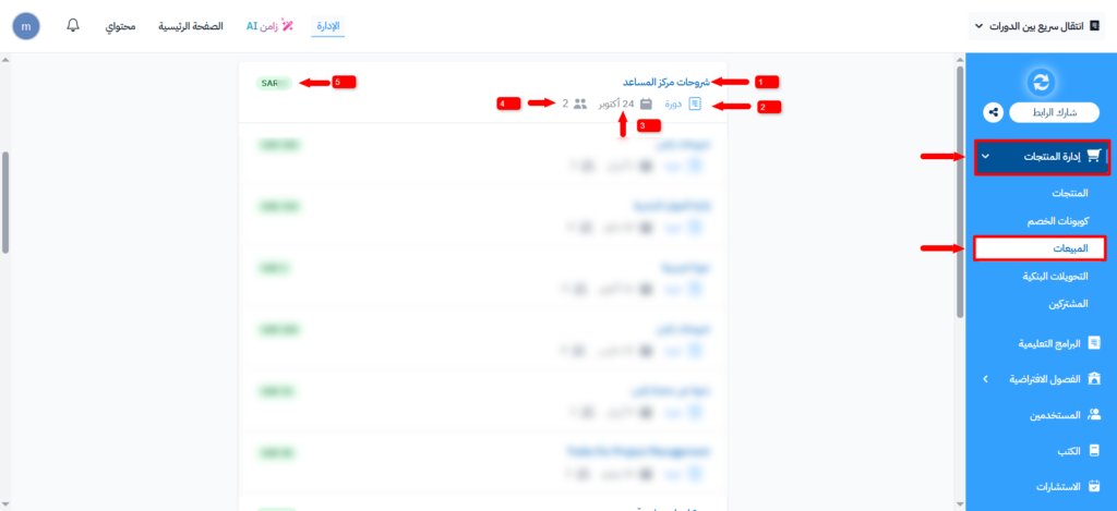 أسفل الإحصائيات ستجد قائمة بالمنتجات التي تم بيعها، مع تفاصيل كل منتج، وتشمل: