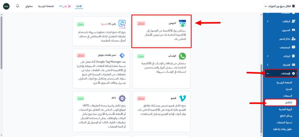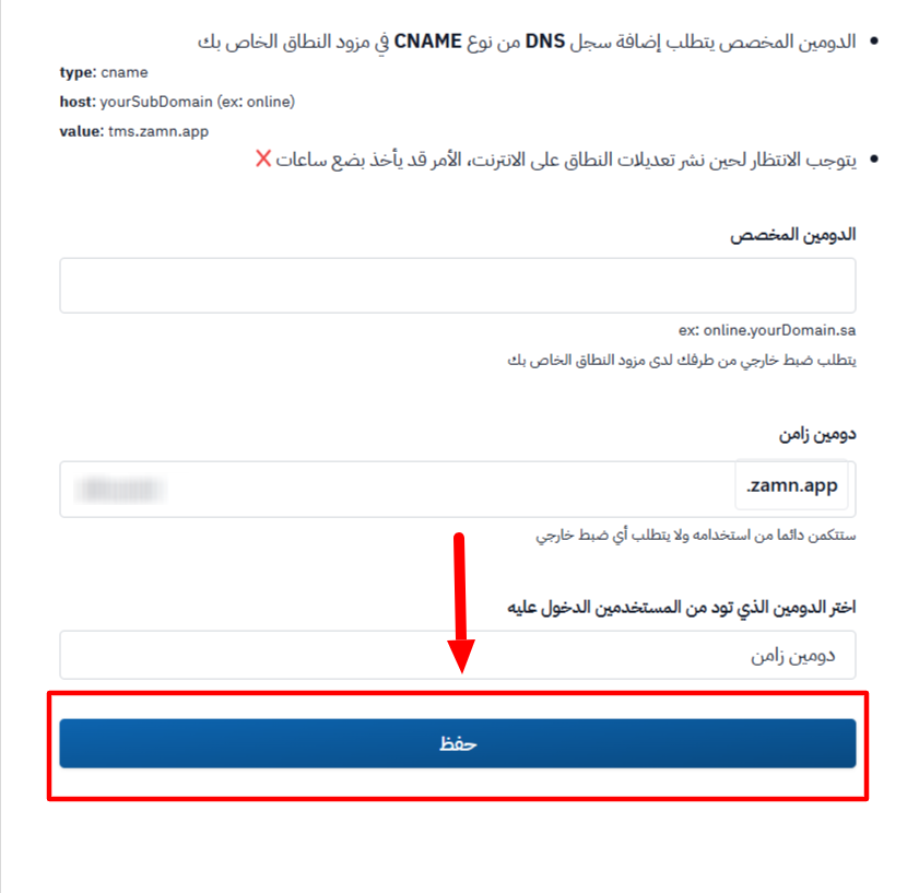 تتيح لك منصة زامن إمكانية تعديل الدومين (النطاق) الفرعي (النطاق) الخاص بأكاديميتك بسهولة من خلال لوحة التحكم، وذلك في حال رغبتك في تغيير اسم الرابط أو تحسين هوية الأكاديمية الرقمية.