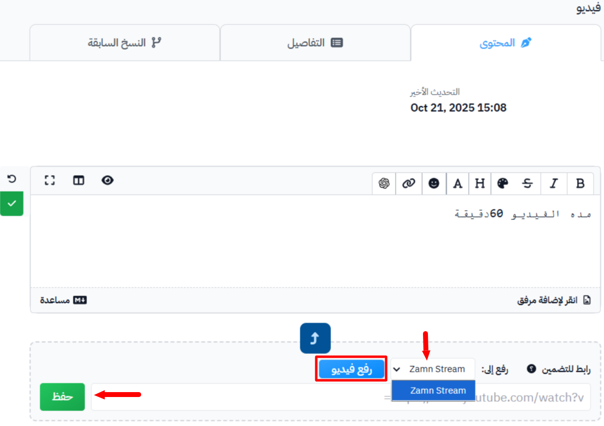يمكنك من خلال هذه الطريقة رفع الفيديو مباشرة عبر منصة Zamn Stream.