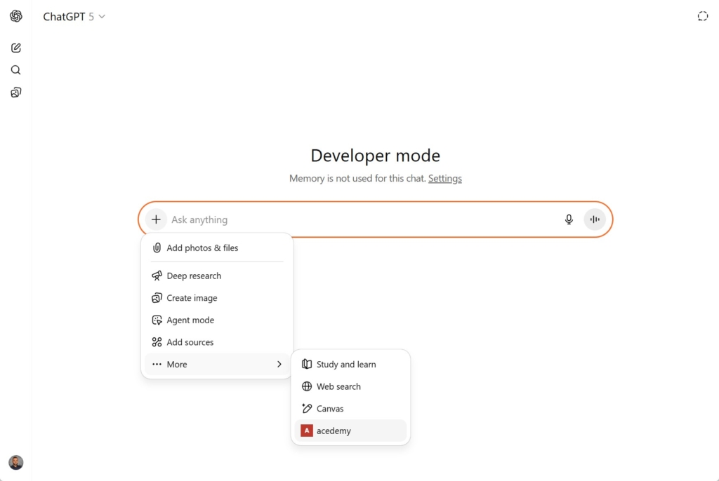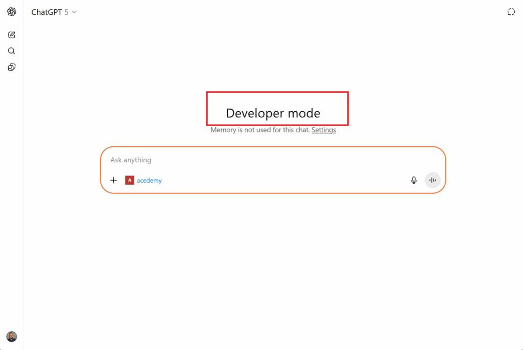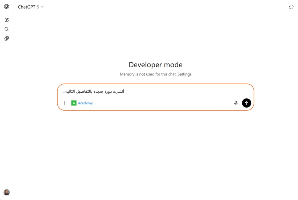 بعد تفعيله، ستلاحظ ظهور عبارة أو وسم “Developer mode” داخل واجهة ChatGPT
