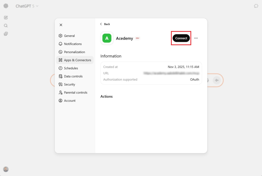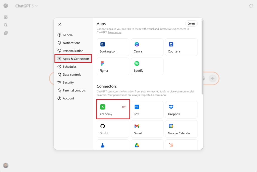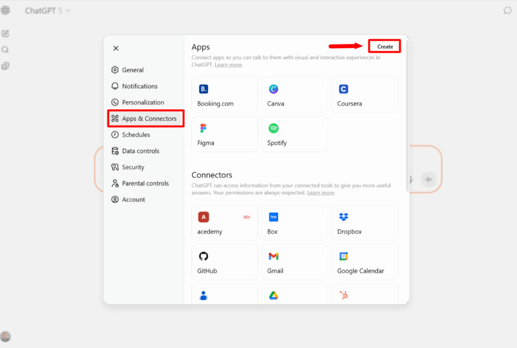 - انتقل إلى: Settings → Apps & Connectors → Create