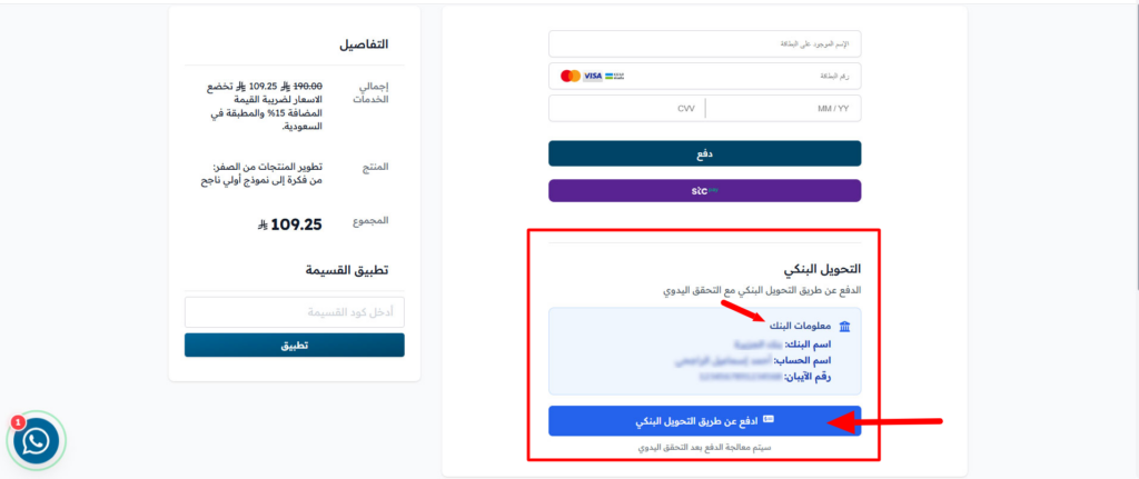 عند شراء أي دورة أو منتج، يمكنك اختيار الدفع عبر التحويل البنكي كأحد خيارات الدفع المتاحة.