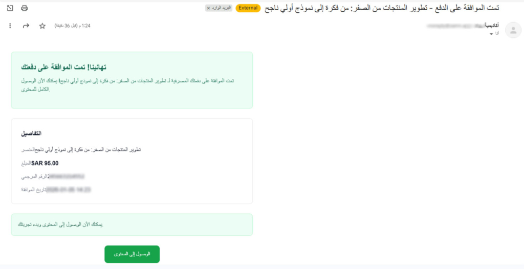 4- عند الموافقة على طلب الدفع، سيتم إرسال رسالة بريد إلكتروني إلى بريدك الإلكتروني المسجّل لإبلاغك بالموافقة.