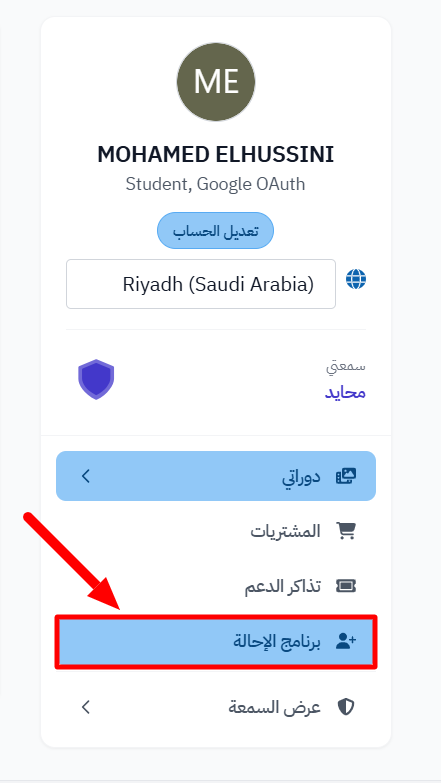 3 . من القائمة الجانبية، اختر برنامج الإحالة لعرض لوحة التحكم الخاصة بالإحالات.