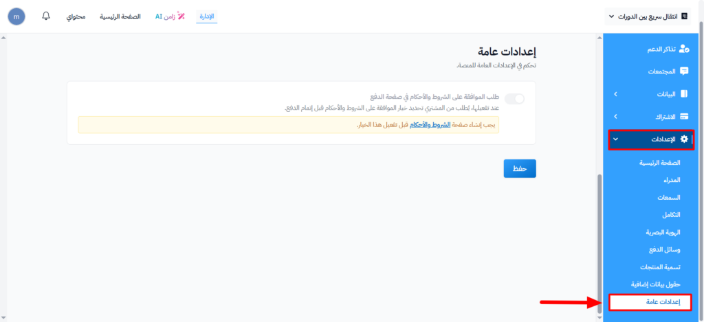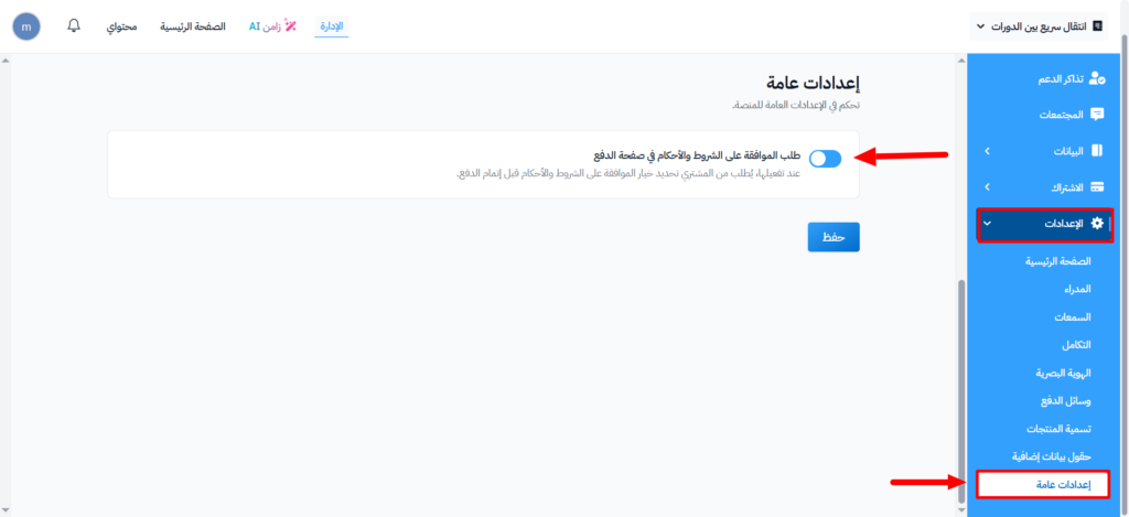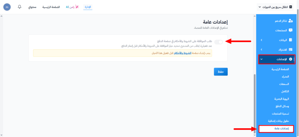 4. فعّل خيار “طلب الموافقة على الشروط والأحكام في صفحة الدفع“.