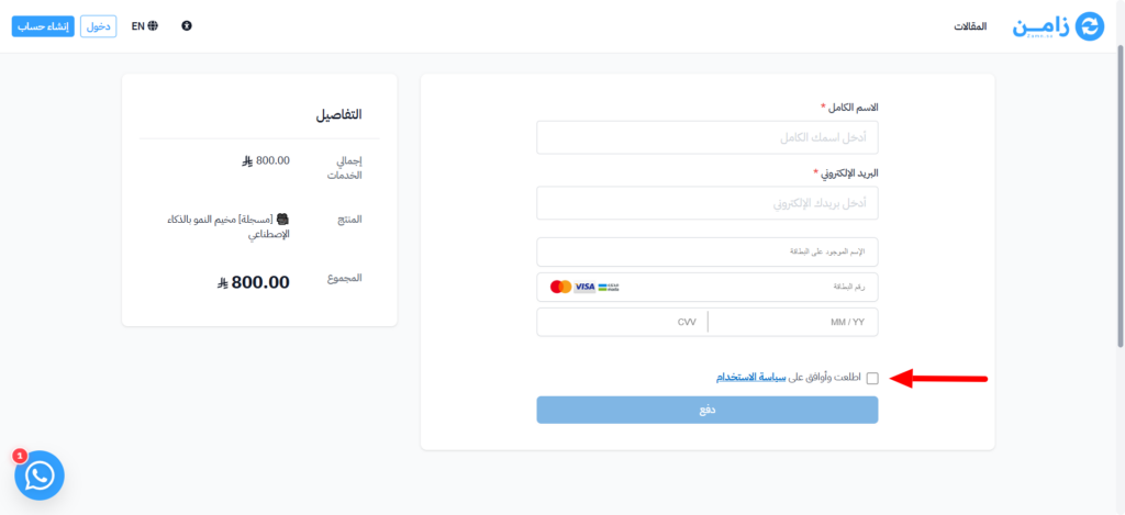 تفعيل طلب الموافقة على الشروط في صفحة الدفع